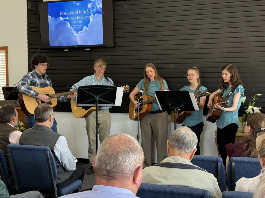 He is risen indeed! Happy Resurrection month! We had a great time celebrating Easter with Valley Baptist Church here in Eureka, MT. We discovered last fall that our piano teacher also teaches guitar. Nathanael, Rebekah, and Brenda have been taking guitar lessons and did a quartet with Brian as well as a quintet with two other friends from the church. Nathanael and Brenda also had a piano duet to share. It is a blessing to minister to the body of Christ with the talents God has blessed us with.